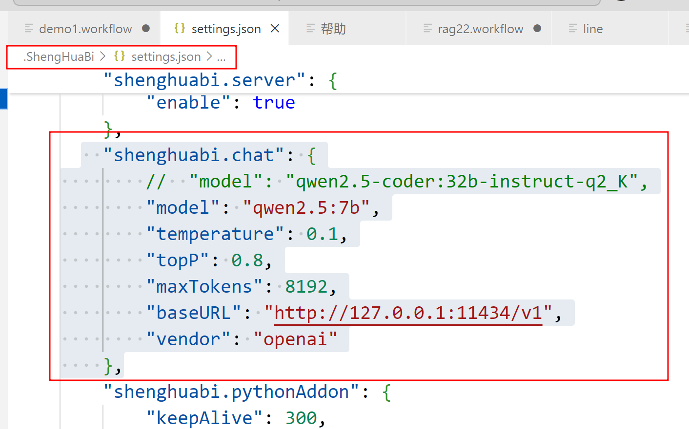 您确认这里已经修改了吗?注意我框的配置路径.ShengHuaBi\settings.json,因为有两个配置文件,一个是全局配置文件,一个是工作区配置文件,所以您两个都需要检查下,默认是工作区配置文件优先级高于全局生效