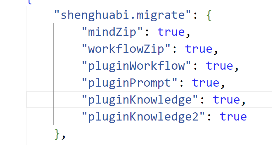 请问settings.json文件中shenghuabi.migrate部分是什么样子的