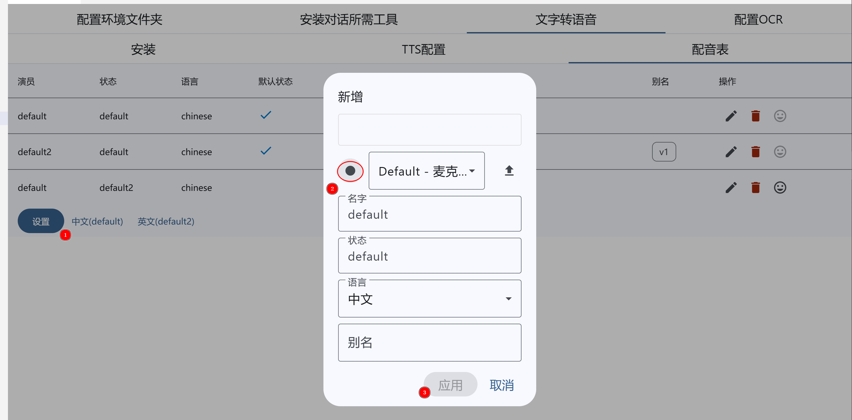 - 文本生成语音之前需要先设置配音,然后生成的语音就会以提供的配音样本为准进行生成
