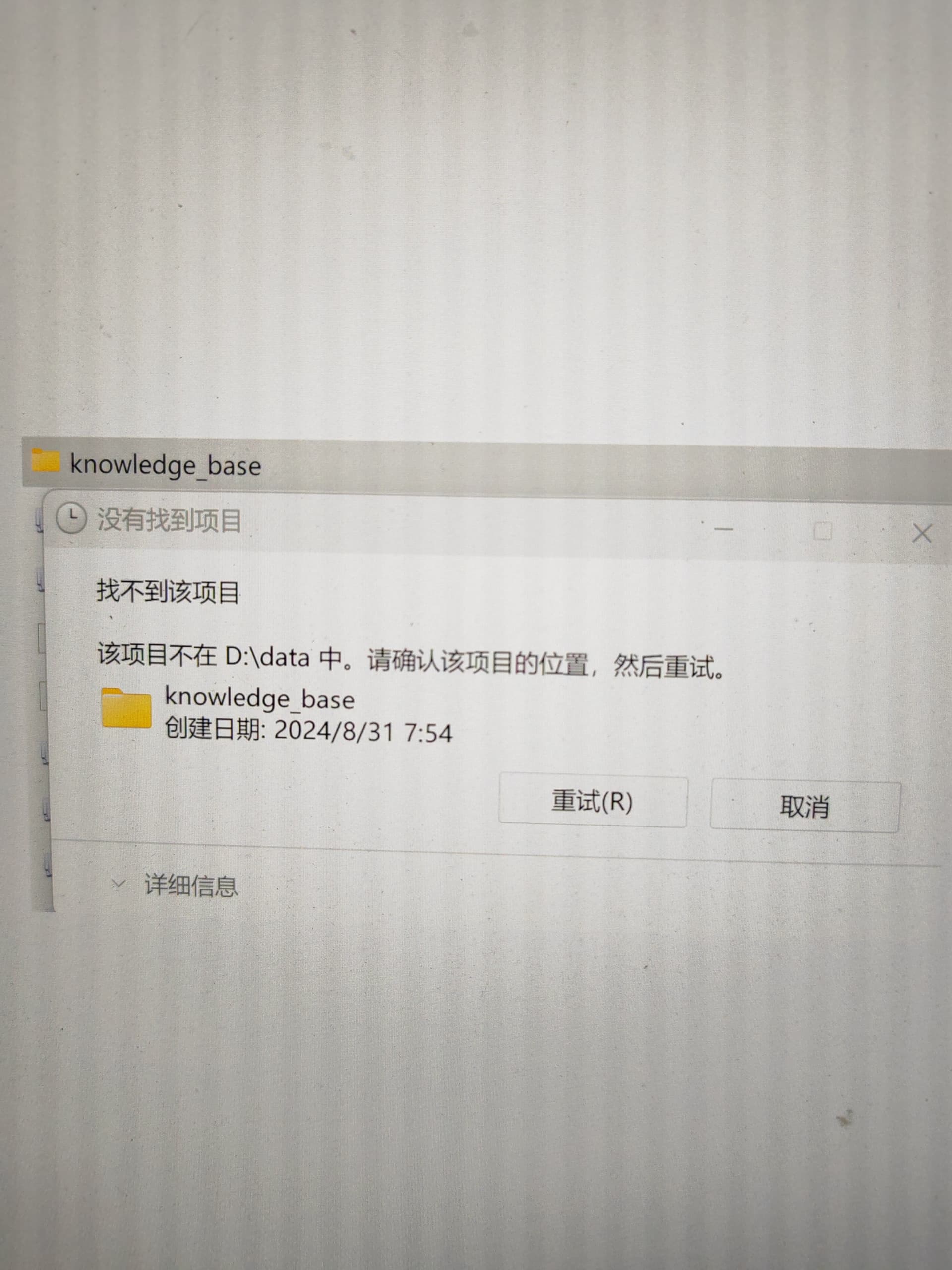 我的台式机知识库无法加入文件,软件和数据全部删除,重装,还是不行。