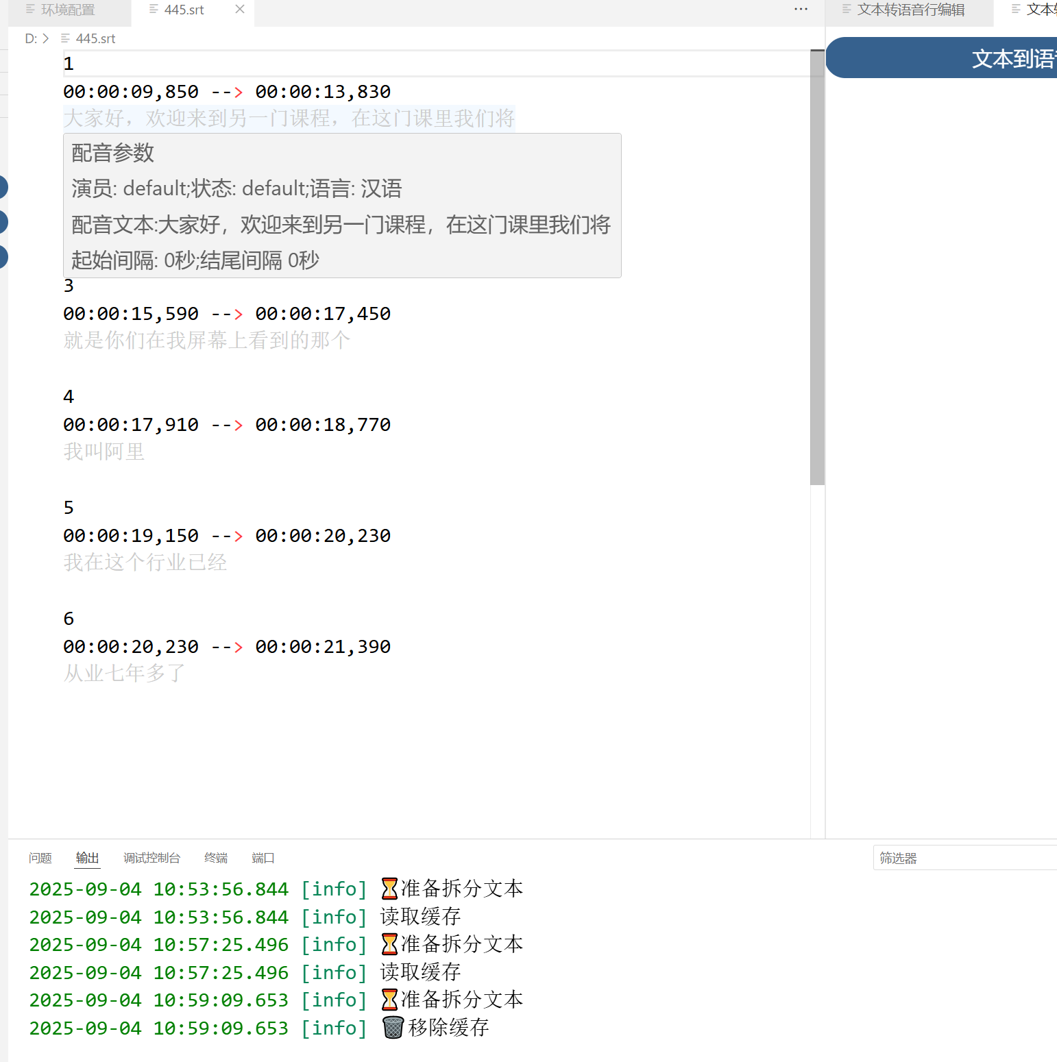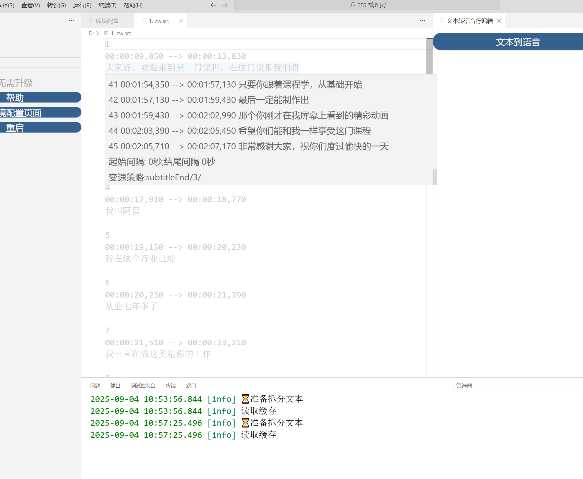 另外,不管说那种变速模式,最后都会生成新的srt,并且新的srt的持续时间和生成的音频是对应的