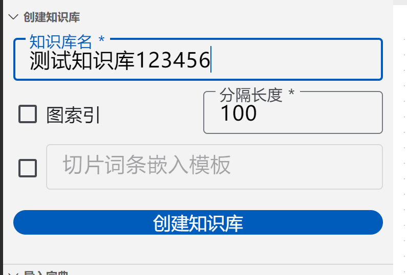 指定知识库名和分隔长度即可