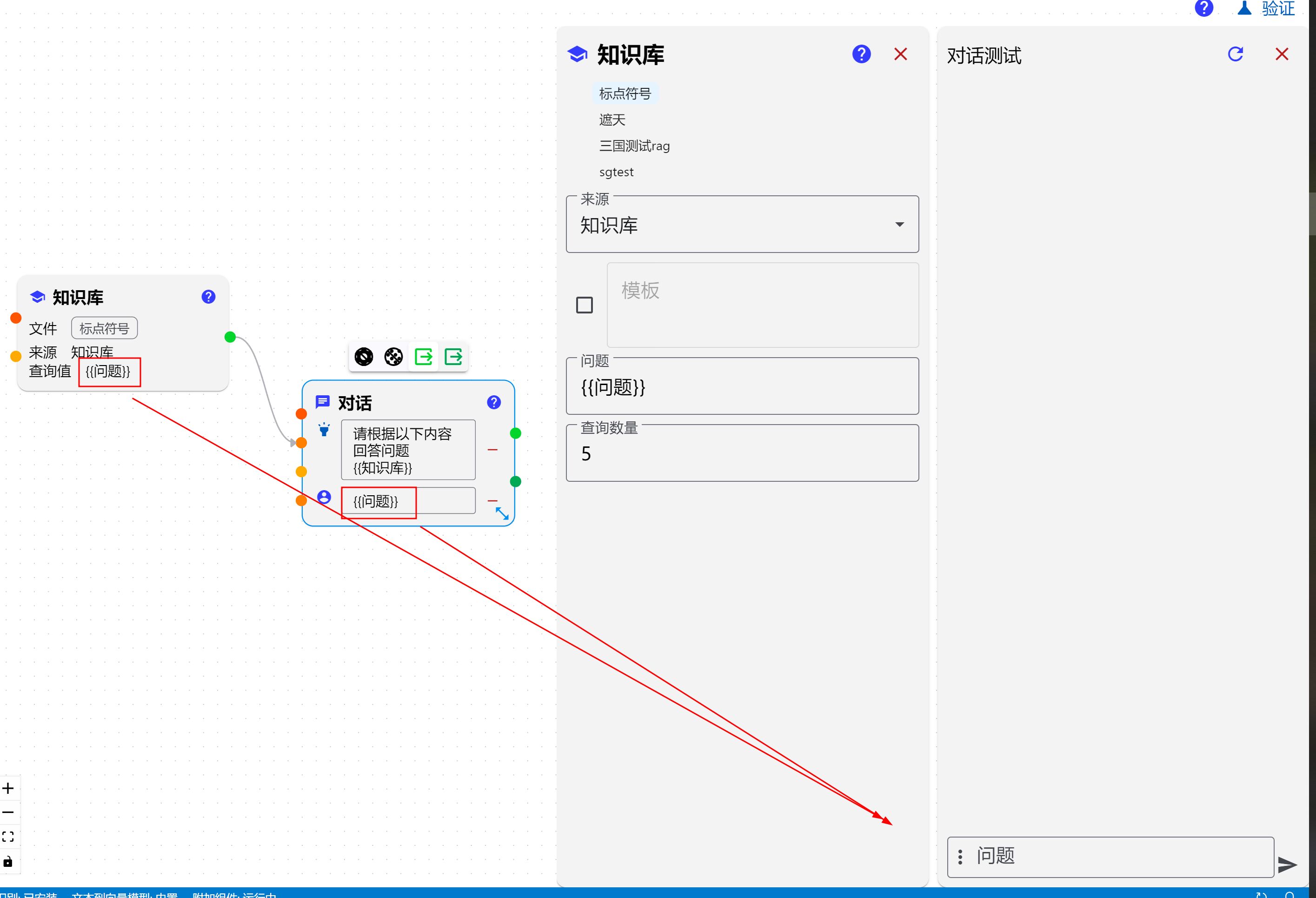 向知识库查询的值和对话中提问的值可以是两个不同的变量(模板)