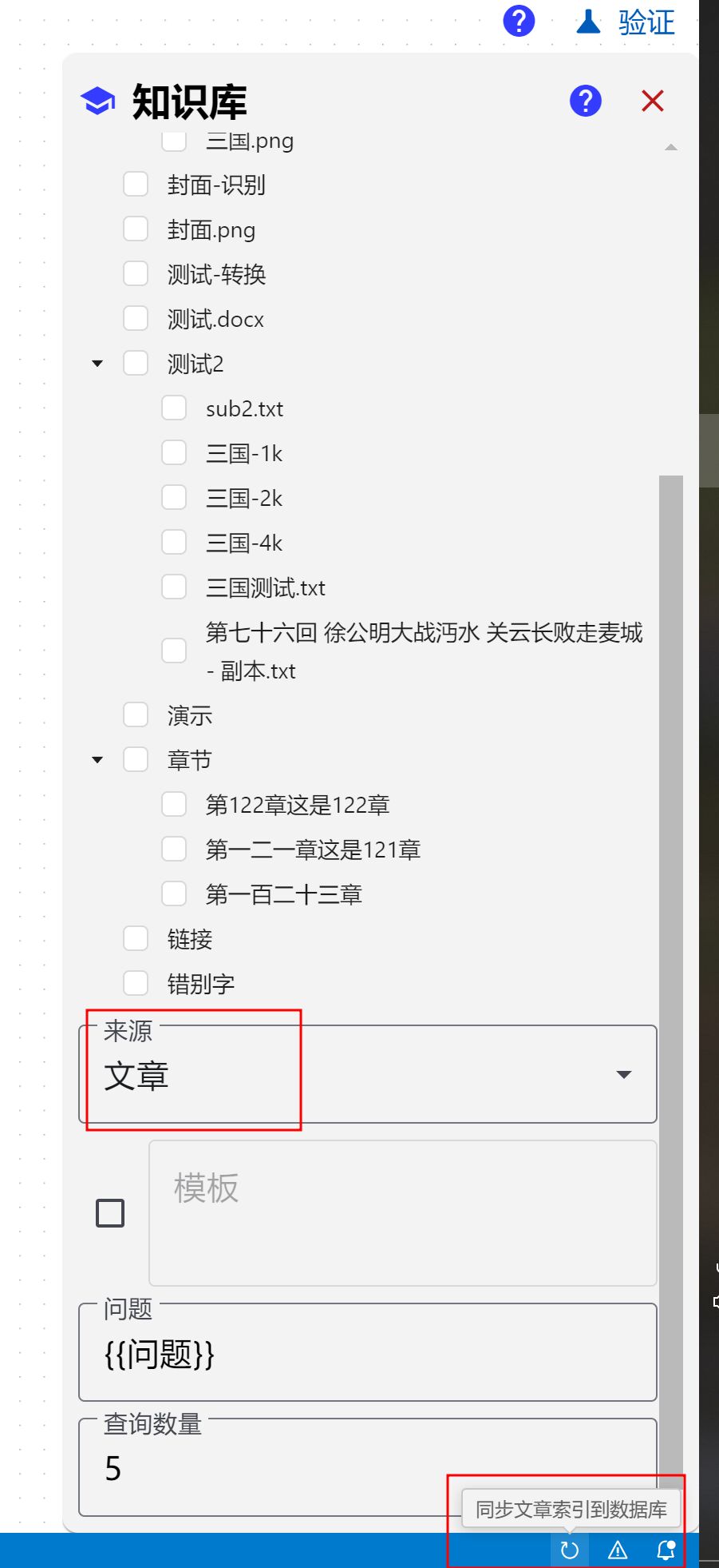 查询前需要最好保证知识库是最新内容(右下角同步更新)