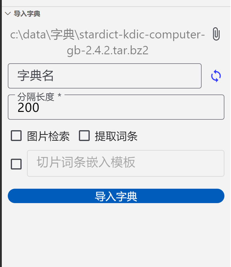 字典与知识库一样,只不过字典是一个比较独立的文件,一般一个至少几千条甚至几十万条,所以需要单独导入