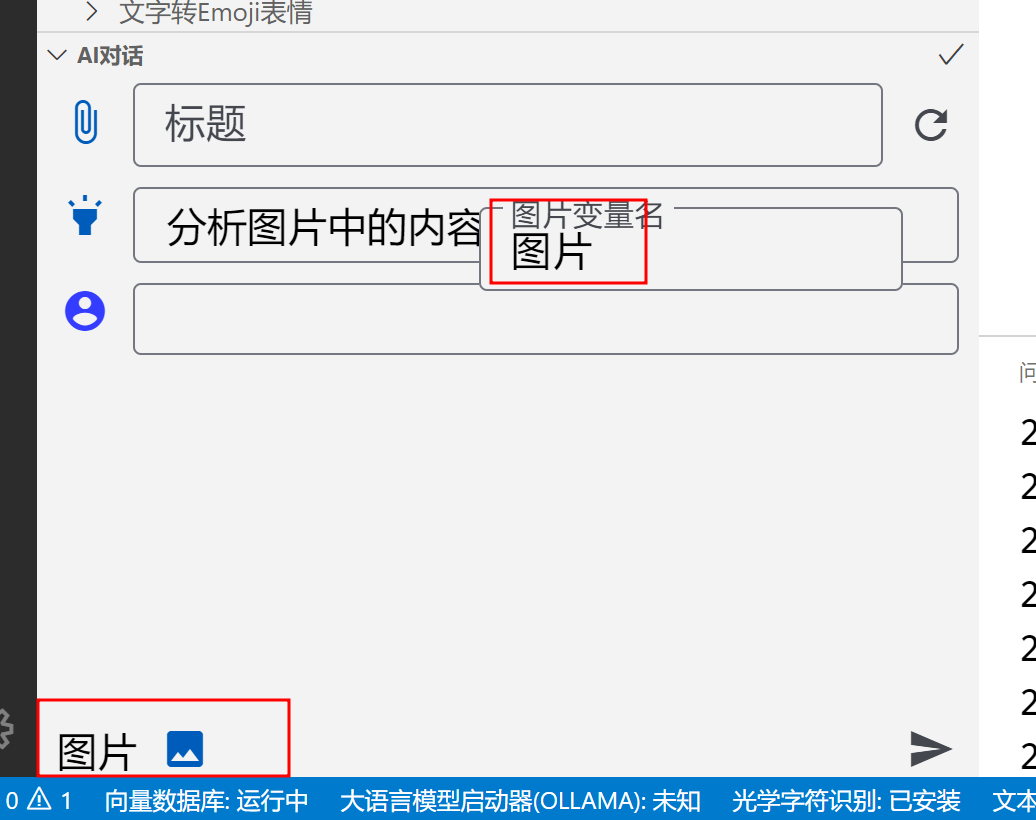 - 传入图片对话,需要使用支持的大语言模型,如