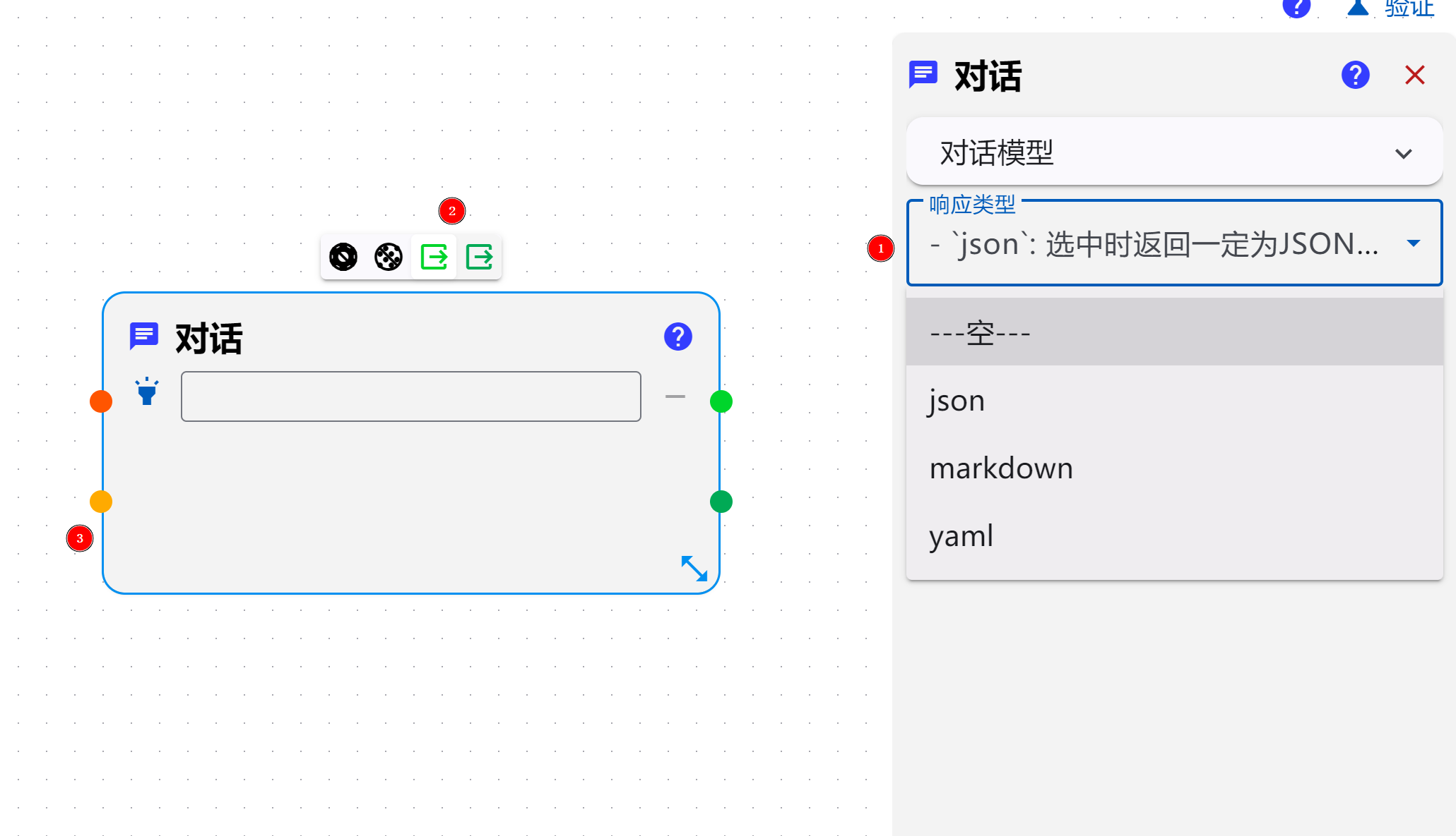 json,yaml将返回一个对象,markdown将返回代码块内容(字符串) - 第二个出口为原始数据返回,无论使用何种响应方式,都返回模型生成的字符串
