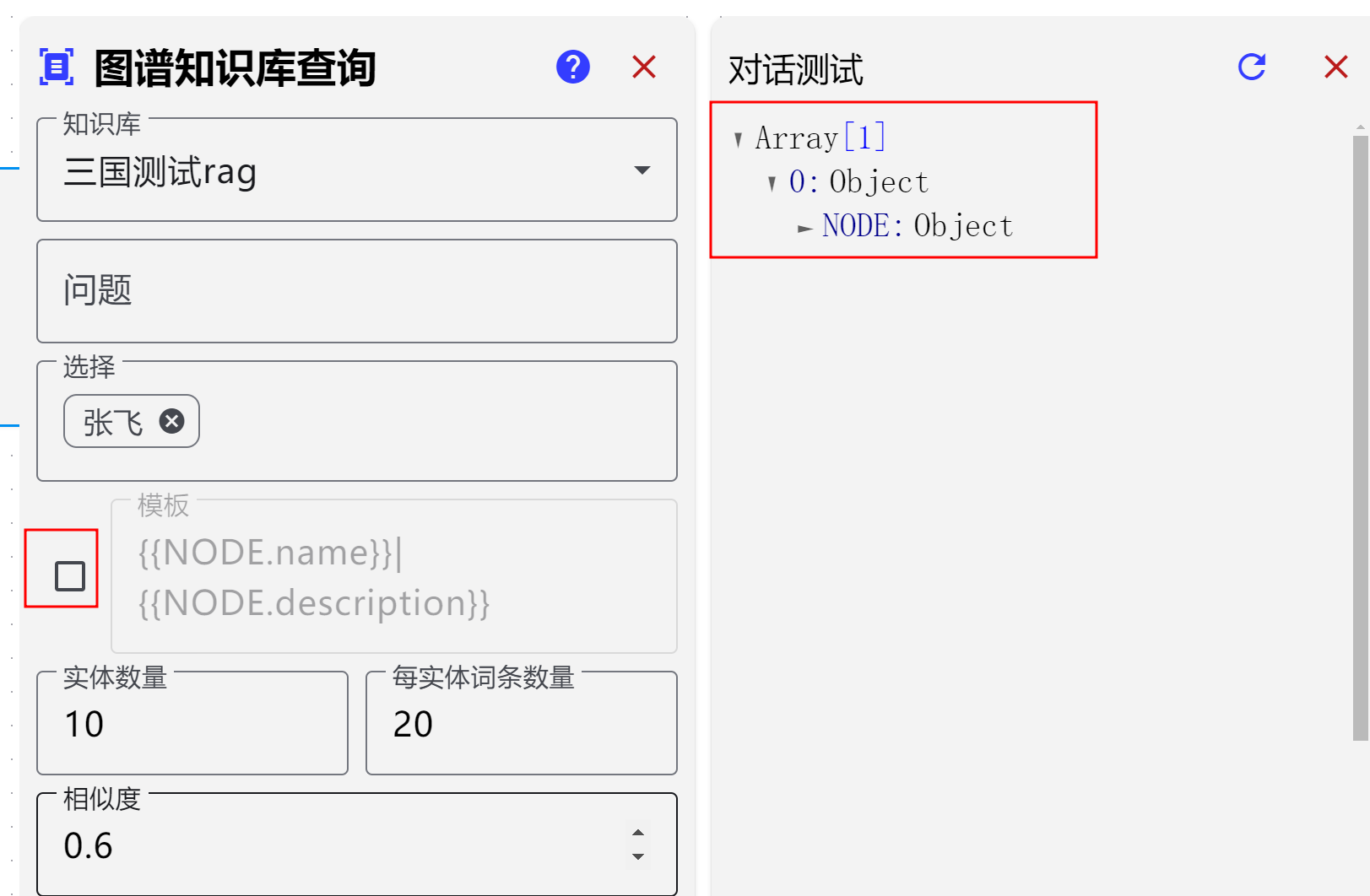节点是输入问题后查询到相关实体和联系,然后再放到提示词中进行对话