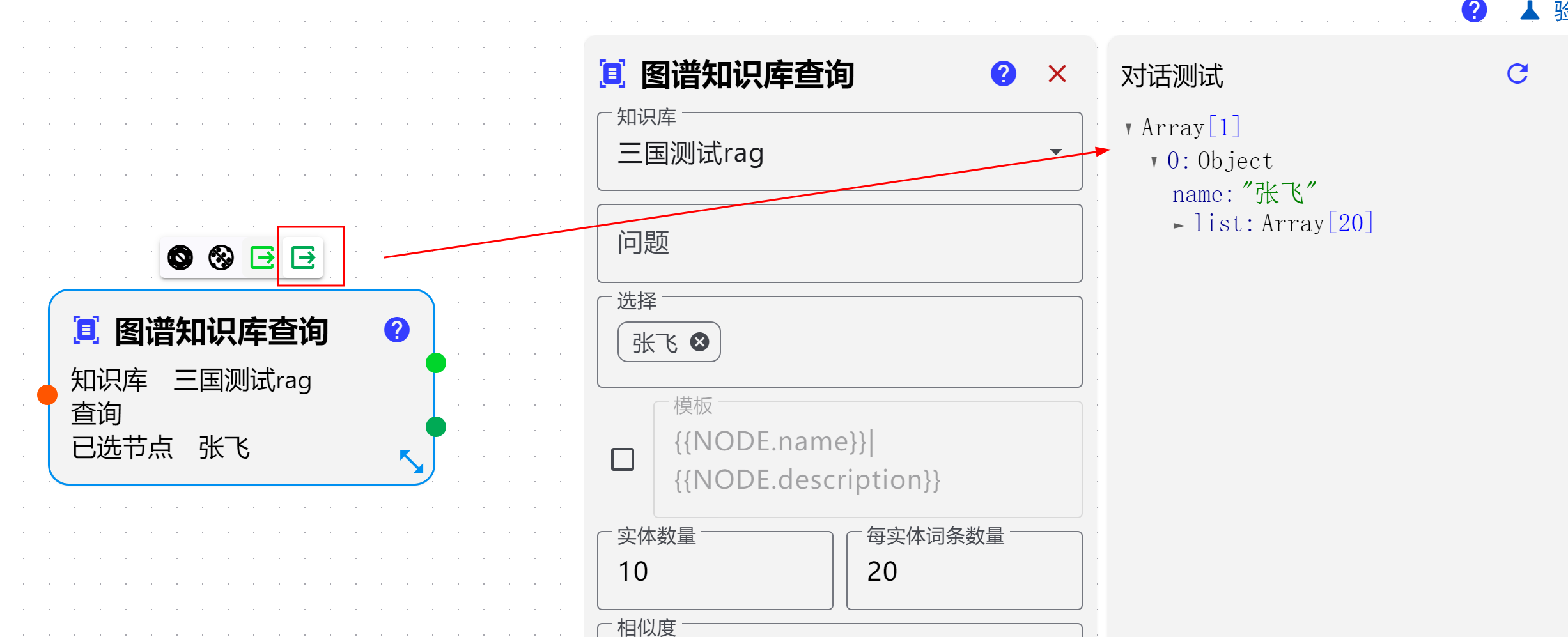 本节点是根据输入问题直接查询对应的实体返回,不进行过多处理,方便更多自定义操作